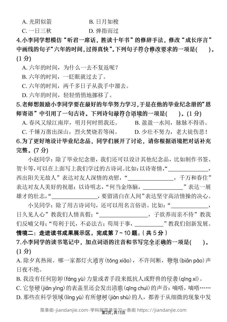 【期末大情境测试卷】六下语文 简单街 10月前发布 关注 私信 020 【期末大情境测试卷】六下语文此内容为付费资源,请付费后查看¥2.7黄金会员免费钻石会员免费立即购买您当前未登录!建议登陆后购买,可保存购买订单格式pdf页数13 页大小879.00 KB付费资源 ——预览已结束,还剩11页未读——开通会员后可免费下载高清完整文档 © 版权声明文章版权归作者所有,未经允许请勿转载。THE END小学语文喜欢就支持一下吧点赞0 分享收藏0