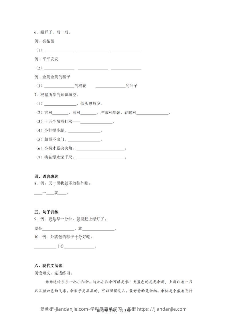 24-25学年一下语文期末试卷五(含答案9页) 简单街 10月前发布 关注 私信 020 24-25学年一下语文期末试卷五(含答案9页)此内容为付费资源,请付费后查看¥2.7黄金会员免费钻石会员免费立即购买您当前未登录!建议登陆后购买,可保存购买订单格式pdf页数8 页大小2.29 MB付费资源 ——预览已结束,还剩6页未读——开通会员后可免费下载高清完整文档 © 版权声明文章版权归作者所有,未经允许请勿转载。THE END小学语文喜欢就支持一下吧点赞0 分享收藏0