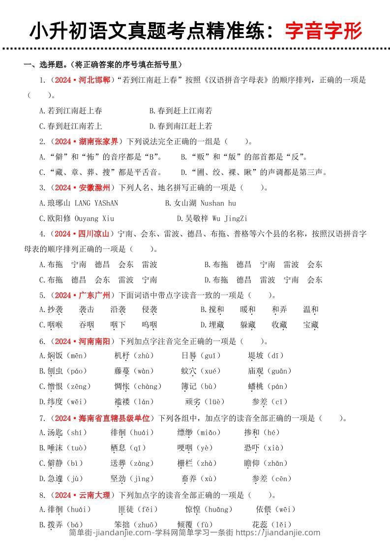 小升初语文备考真题分类汇编专题1字音字形 简单街 5月前发布 关注 私信 000 小升初语文备考真题分类汇编专题1字音字形此内容为付费资源,请付费后查看¥1.2黄金会员免费钻石会员免费立即购买您当前未登录!建议登陆后购买,可保存购买订单格式pdf页数11 页大小373.41 KB付费资源 ——预览已结束,还剩9页未读——开通会员后可免费下载高清完整文档 © 版权声明文章版权归作者所有,未经允许请勿转载。THE END小升初喜欢就支持一下吧点赞0 分享收藏0