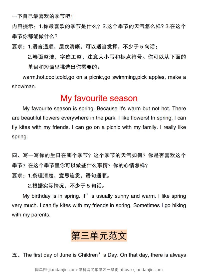 五下人教PEP版英语【各单元作文范文】 简单街 9月前发布 关注 私信 040 五下人教PEP版英语【各单元作文范文】此内容为付费资源,请付费后查看¥2.7黄金会员免费钻石会员免费立即购买您当前未登录!建议登陆后购买,可保存购买订单格式pdf页数4 页大小1.16 MB付费资源 ——预览已结束,还剩2页未读——开通会员后可免费下载高清完整文档 © 版权声明文章版权归作者所有,未经允许请勿转载。THE END小学英语喜欢就支持一下吧点赞0 分享收藏0