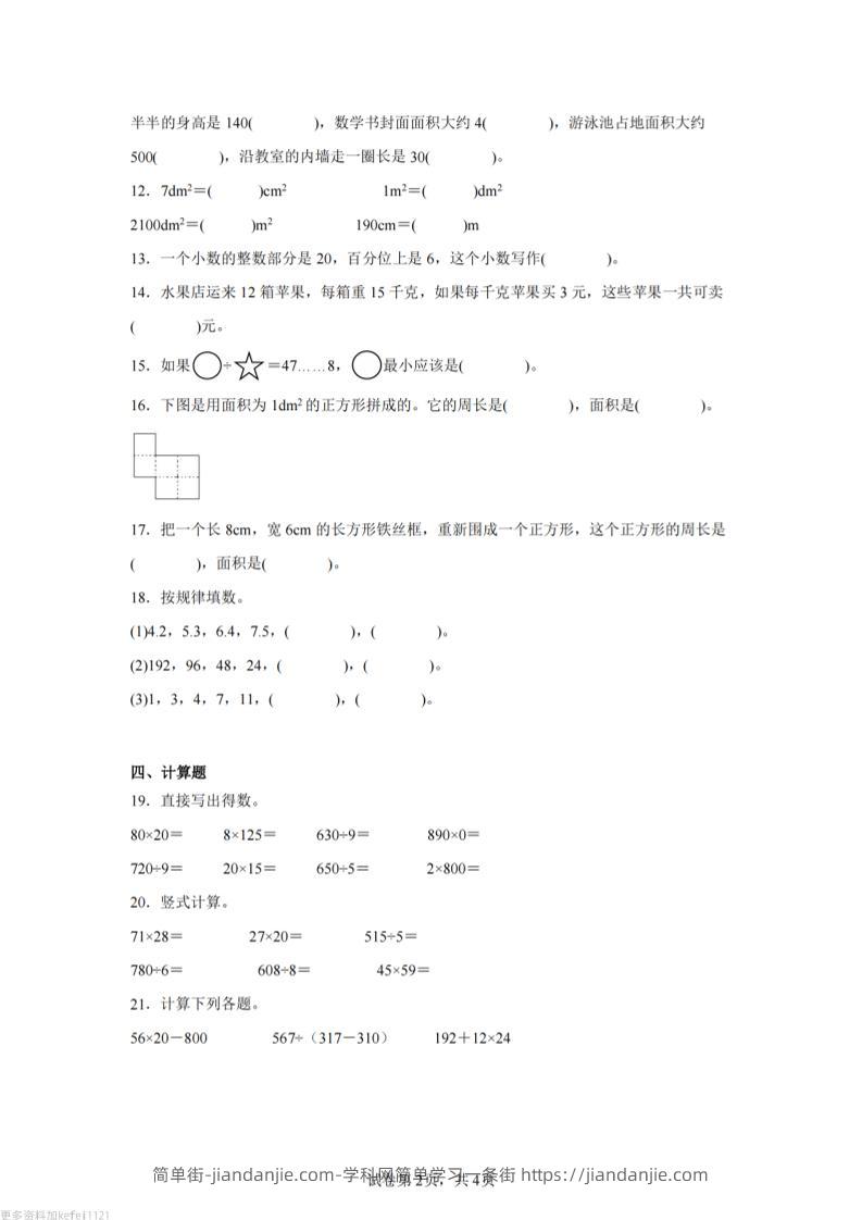 24-25三下数学(西师版)期末试卷4 简单街 7月前发布 关注 私信 020 24-25三下数学(西师版)期末试卷4此内容为付费资源,请付费后查看¥0.9黄金会员免费钻石会员免费立即购买您当前未登录!建议登陆后购买,可保存购买订单格式pdf页数14 页大小5.78 MB付费资源 ——预览已结束,还剩12页未读——开通会员后可免费下载高清完整文档 © 版权声明文章版权归作者所有,未经允许请勿转载。THE END小学数学喜欢就支持一下吧点赞0 分享收藏0