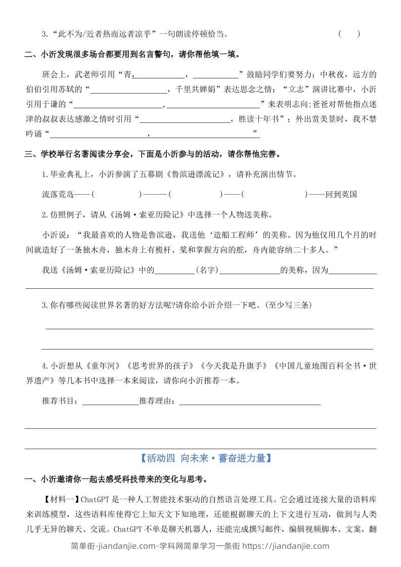 六下语文期末情景卷(五)+答案 简单街 10月前发布 关注 私信 0400 六下语文期末情景卷(五)+答案此内容为付费资源,请付费后查看¥0.9黄金会员免费钻石会员免费立即购买您当前未登录!建议登陆后购买,可保存购买订单格式pdf页数8 页大小517.34 KB付费资源 ——预览已结束,还剩6页未读——开通会员后可免费下载高清完整文档 © 版权声明文章版权归作者所有,未经允许请勿转载。THE END小学语文喜欢就支持一下吧点赞0 分享收藏0