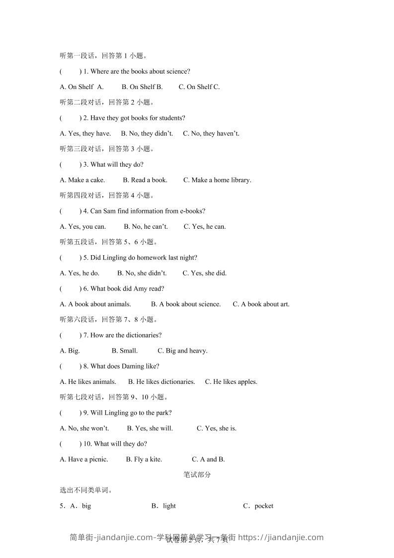 2024-2025学年五年级英语下学期期末全真模拟(外研版三起)英语(提高卷01) 简单街 5月前发布 关注 私信 0170 2024-2025学年五年级英语下学期期末全真模拟(外研版三起)英语(提高卷01)此内容为付费资源,请付费后查看¥0.9黄金会员免费钻石会员免费立即购买您当前未登录!建议登陆后购买,可保存购买订单格式pdf页数15 页大小451.51 KB付费资源 ——预览已结束,还剩13页未读——开通会员后可免费下载高清完整文档 © 版权声明文章版权归作者所有,未经允许请勿转载。THE END小学英语喜欢就支持一下吧点赞0 分享收藏0