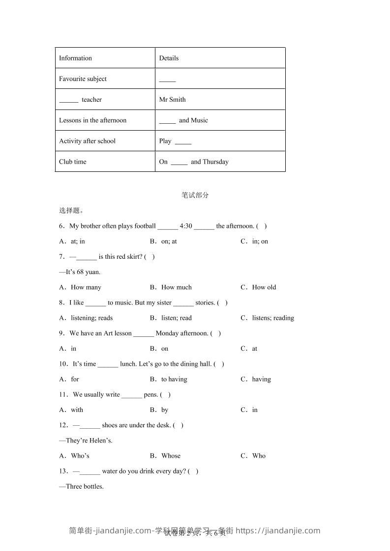 2024-2025学年四年级英语下学期期末素养测评(译林版三起)英语(提高卷01) 简单街 9月前发布 关注 私信 030 2024-2025学年四年级英语下学期期末素养测评(译林版三起)英语(提高卷01)此内容为付费资源,请付费后查看¥2.7黄金会员免费钻石会员免费立即购买您当前未登录!建议登陆后购买,可保存购买订单格式pdf页数12 页大小334.75 KB付费资源 ——预览已结束,还剩10页未读——开通会员后可免费下载高清完整文档 © 版权声明文章版权归作者所有,未经允许请勿转载。THE END小学英语喜欢就支持一下吧点赞0 分享收藏0