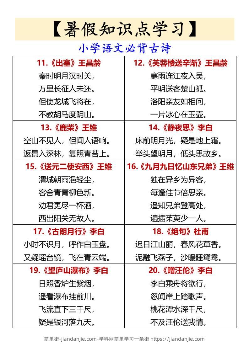 【暑假知识点学习】小学语文必背古诗-小升初语文 简单街 6月前发布 关注 私信 030 【暑假知识点学习】小学语文必背古诗-小升初语文此内容为付费资源,请付费后查看¥1.5黄金会员免费钻石会员免费立即购买您当前未登录!建议登陆后购买,可保存购买订单格式docx页数3 页大小309.05 KB付费资源 ——预览已结束,还剩1页未读——开通会员后可免费下载高清完整文档 © 版权声明文章版权归作者所有,未经允许请勿转载。THE END小升初喜欢就支持一下吧点赞0 分享收藏0