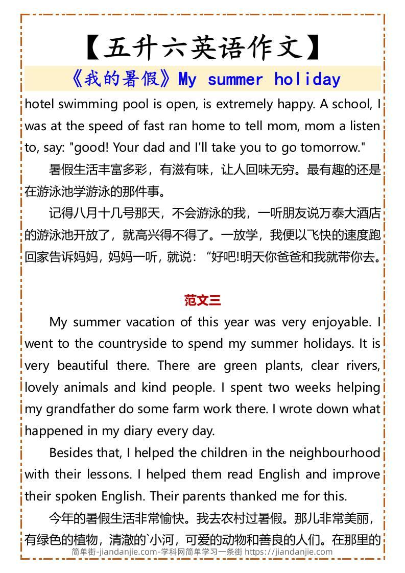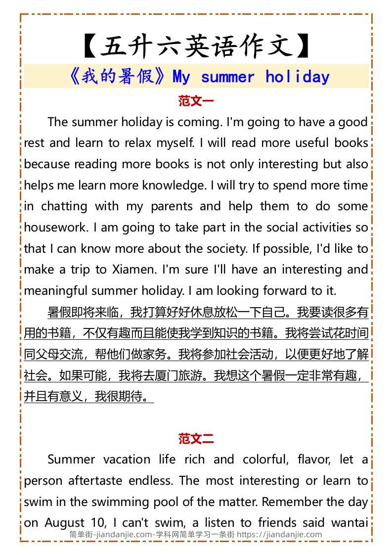 【五升六英语作文】《我的暑假》-六上英语 简单街 4月前发布 关注 私信 040 【五升六英语作文】《我的暑假》-六上英语此内容为付费资源,请付费后查看¥2.7黄金会员免费钻石会员免费立即购买您当前未登录!建议登陆后购买,可保存购买订单格式docx页数3 页大小193.38 KB付费资源 ——预览已结束,还剩1页未读——开通会员后可免费下载高清完整文档 © 版权声明文章版权归作者所有,未经允许请勿转载。THE END小学英语喜欢就支持一下吧点赞0 分享收藏0