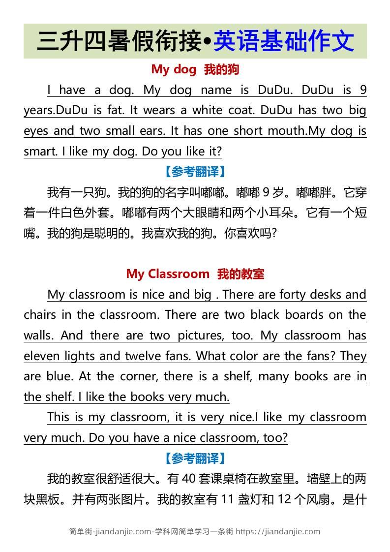 三升四暑假衔接•英语基础作文-四上英语 简单街 4月前发布 关注 私信 010 三升四暑假衔接•英语基础作文-四上英语此内容为付费资源,请付费后查看¥0.9黄金会员免费钻石会员免费立即购买您当前未登录!建议登陆后购买,可保存购买订单格式docx页数3 页大小172.30 KB付费资源 ——预览已结束,还剩1页未读——开通会员后可免费下载高清完整文档 © 版权声明文章版权归作者所有,未经允许请勿转载。THE END小学英语喜欢就支持一下吧点赞0 分享收藏0