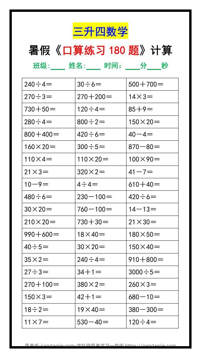三升四数学暑假《口算练习180题》汇总-四上数学 简单街 9月前发布 关注 私信 000 三升四数学暑假《口算练习180题》汇总-四上数学此内容为付费资源,请付费后查看¥2.7黄金会员免费钻石会员免费立即购买您当前未登录!建议登陆后购买,可保存购买订单格式docx页数3 页大小34.46 KB付费资源 ——预览已结束,还剩1页未读——开通会员后可免费下载高清完整文档 © 版权声明文章版权归作者所有,未经允许请勿转载。THE END小学数学喜欢就支持一下吧点赞0 分享收藏0