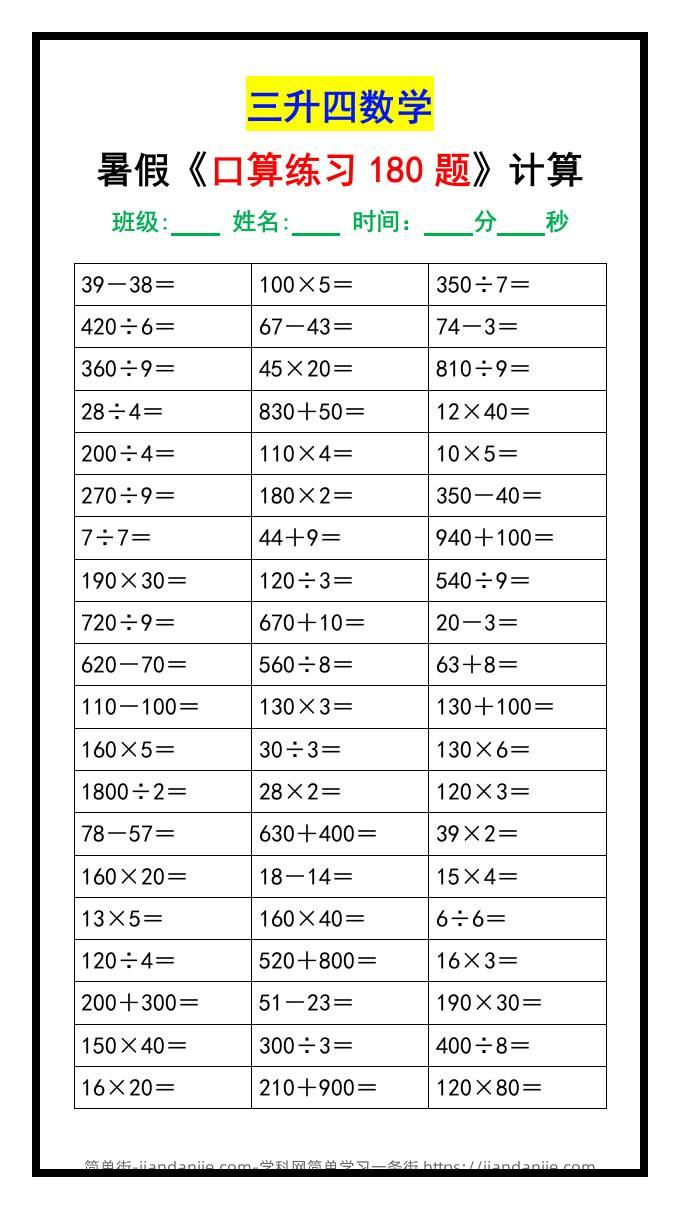 三升四数学暑假《口算练习题180道》汇总-四上数学 简单街 6月前发布 关注 私信 000 三升四数学暑假《口算练习题180道》汇总-四上数学此内容为付费资源,请付费后查看¥1.5黄金会员免费钻石会员免费立即购买您当前未登录!建议登陆后购买,可保存购买订单格式docx页数3 页大小34.11 KB付费资源 ——预览已结束,还剩1页未读——开通会员后可免费下载高清完整文档 © 版权声明文章版权归作者所有,未经允许请勿转载。THE END小学数学喜欢就支持一下吧点赞0 分享收藏0