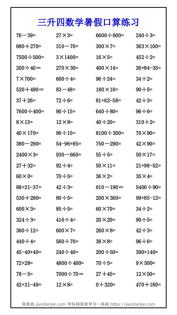 三升四数学暑假口算练习-四上数学 简单街 6月前发布 关注 私信 0190 三升四数学暑假口算练习-四上数学此内容为付费资源,请付费后查看¥1.2黄金会员免费钻石会员免费立即购买您当前未登录!建议登陆后购买,可保存购买订单格式docx页数4 页大小17.39 KB付费资源 ——预览已结束,还剩2页未读——开通会员后可免费下载高清完整文档 © 版权声明文章版权归作者所有,未经允许请勿转载。THE END小学数学喜欢就支持一下吧点赞0 分享收藏0