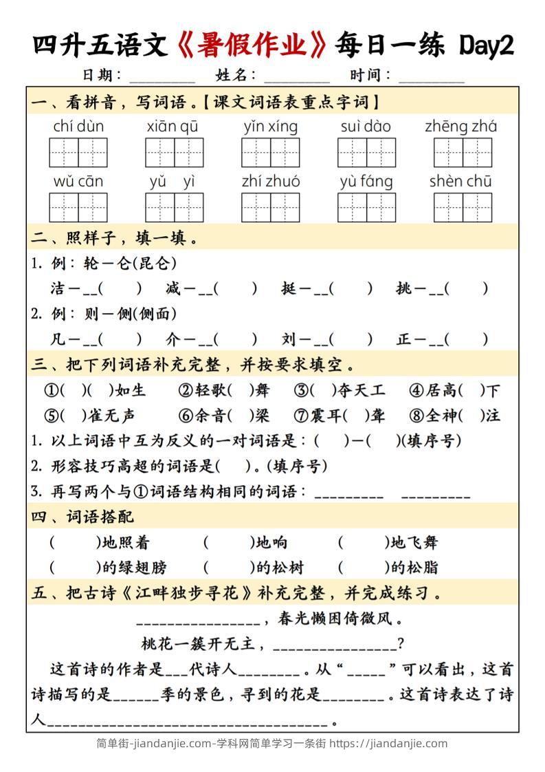 四升五语文暑假作业每日一练共30天-五上语文 简单街 6月前发布 关注 私信 020 四升五语文暑假作业每日一练共30天-五上语文此内容为付费资源,请付费后查看¥2.7黄金会员免费钻石会员免费立即购买您当前未登录!建议登陆后购买,可保存购买订单格式pdf页数19 页大小9.91 MB付费资源 ——预览已结束,还剩17页未读——开通会员后可免费下载高清完整文档 © 版权声明文章版权归作者所有,未经允许请勿转载。THE END小学语文喜欢就支持一下吧点赞0 分享收藏0