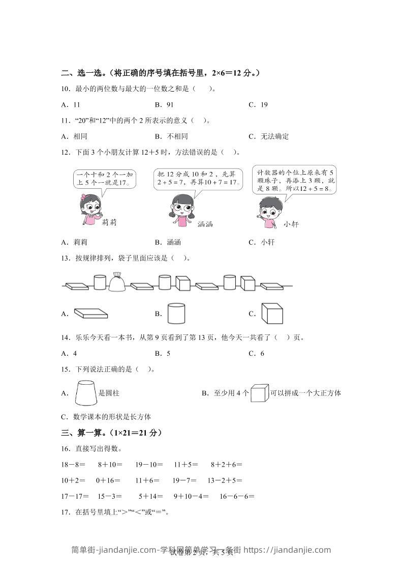 人教版数学一年级上册第四单元《11~20的认识》单元测试卷 简单街 9月前发布 关注 私信 0130 人教版数学一年级上册第四单元《11~20的认识》单元测试卷此内容为付费资源,请付费后查看¥2.7黄金会员免费钻石会员免费立即购买您当前未登录!建议登陆后购买,可保存购买订单格式pdf页数12 页大小670.47 KB付费资源 ——预览已结束,还剩10页未读——开通会员后可免费下载高清完整文档 © 版权声明文章版权归作者所有,未经允许请勿转载。THE END小学数学喜欢就支持一下吧点赞0 分享收藏0