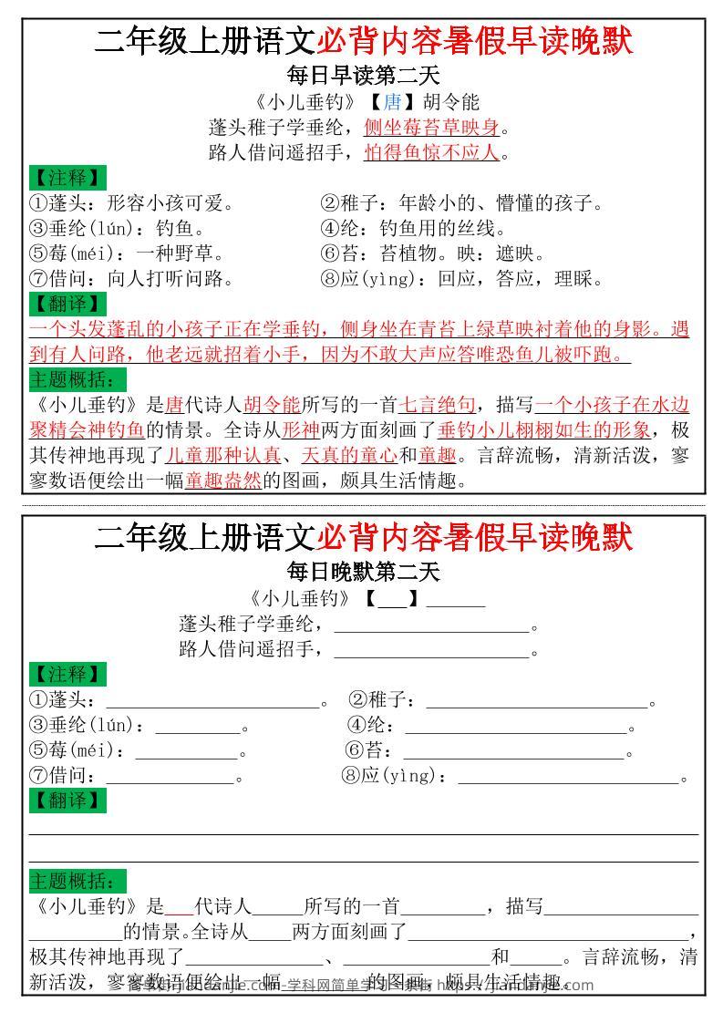 二年级上册语文必背内容暑假早读晚默小纸条 简单街 6月前发布 关注 私信 030 二年级上册语文必背内容暑假早读晚默小纸条此内容为付费资源,请付费后查看¥1.5黄金会员免费钻石会员免费立即购买您当前未登录!建议登陆后购买,可保存购买订单格式pdf页数7 页大小153.49 KB付费资源 ——预览已结束,还剩5页未读——开通会员后可免费下载高清完整文档 © 版权声明文章版权归作者所有,未经允许请勿转载。THE END小学语文喜欢就支持一下吧点赞0 分享收藏0