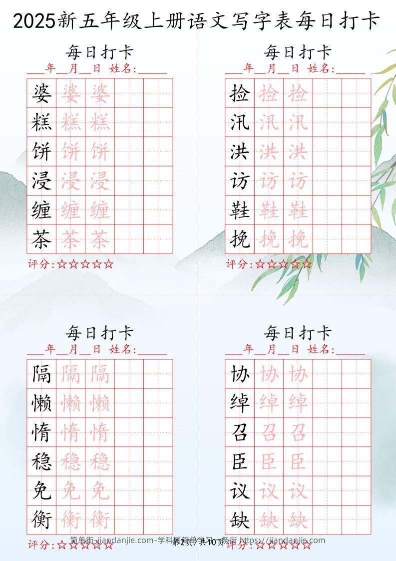 2025秋五年级上册语文写字表每日打卡练习 简单街 6月前发布 关注 私信 030 2025秋五年级上册语文写字表每日打卡练习此内容为付费资源,请付费后查看¥1.5黄金会员免费钻石会员免费立即购买您当前未登录!建议登陆后购买,可保存购买订单格式pdf页数10 页大小24.79 MB付费资源 ——预览已结束,还剩8页未读——开通会员后可免费下载高清完整文档 © 版权声明文章版权归作者所有,未经允许请勿转载。THE END小学语文喜欢就支持一下吧点赞0 分享收藏0