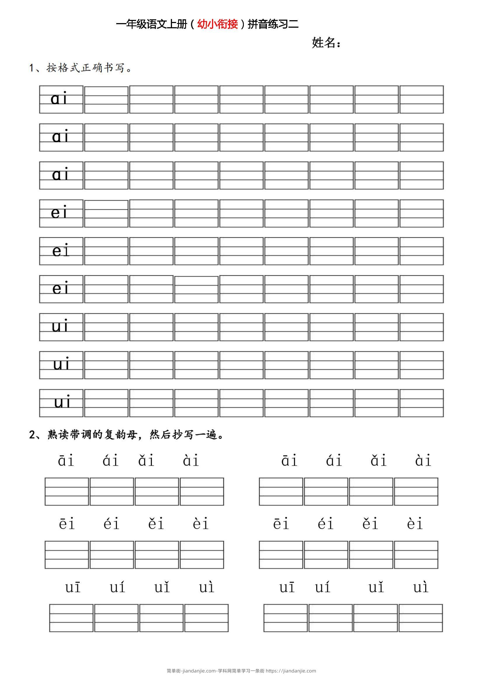 幼小衔接拼音练习题 简单街 4月前发布 关注 私信 020 幼小衔接拼音练习题此内容为付费资源,请付费后查看¥0.9黄金会员免费钻石会员免费立即购买您当前未登录!建议登陆后购买,可保存购买订单格式pdf页数26 页大小5.04 MB付费资源 ——预览已结束,还剩24页未读——开通会员后可免费下载高清完整文档 © 版权声明文章版权归作者所有,未经允许请勿转载。THE END幼升小喜欢就支持一下吧点赞0 分享收藏0