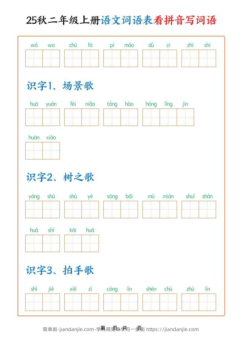 25秋二上语文词语表看拼音写词语(含答案18页) 简单街 9月前发布 关注 私信 0370 25秋二上语文词语表看拼音写词语(含答案18页)此内容为付费资源,请付费后查看¥2.7黄金会员免费钻石会员免费立即购买您当前未登录!建议登陆后购买,可保存购买订单格式pdf页数18 页大小1.27 MB付费资源 ——预览已结束,还剩16页未读——开通会员后可免费下载高清完整文档 © 版权声明文章版权归作者所有,未经允许请勿转载。THE END小学语文喜欢就支持一下吧点赞0 分享收藏0