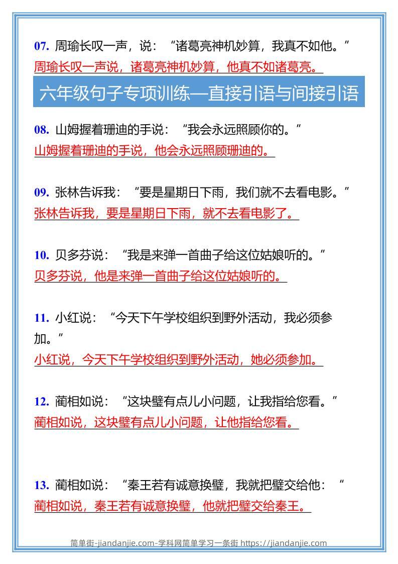 【2025秋新版】六年级句子专项训练-直接引语与间接引语-六上语文 简单街 9月前发布 关注 私信 0110 【2025秋新版】六年级句子专项训练-直接引语与间接引语-六上语文此内容为付费资源,请付费后查看¥2.7黄金会员免费钻石会员免费立即购买您当前未登录!建议登陆后购买,可保存购买订单格式pdf页数3 页大小118.28 KB付费资源 ——预览已结束,还剩1页未读——开通会员后可免费下载高清完整文档 © 版权声明文章版权归作者所有,未经允许请勿转载。THE END小学语文喜欢就支持一下吧点赞0 分享收藏0