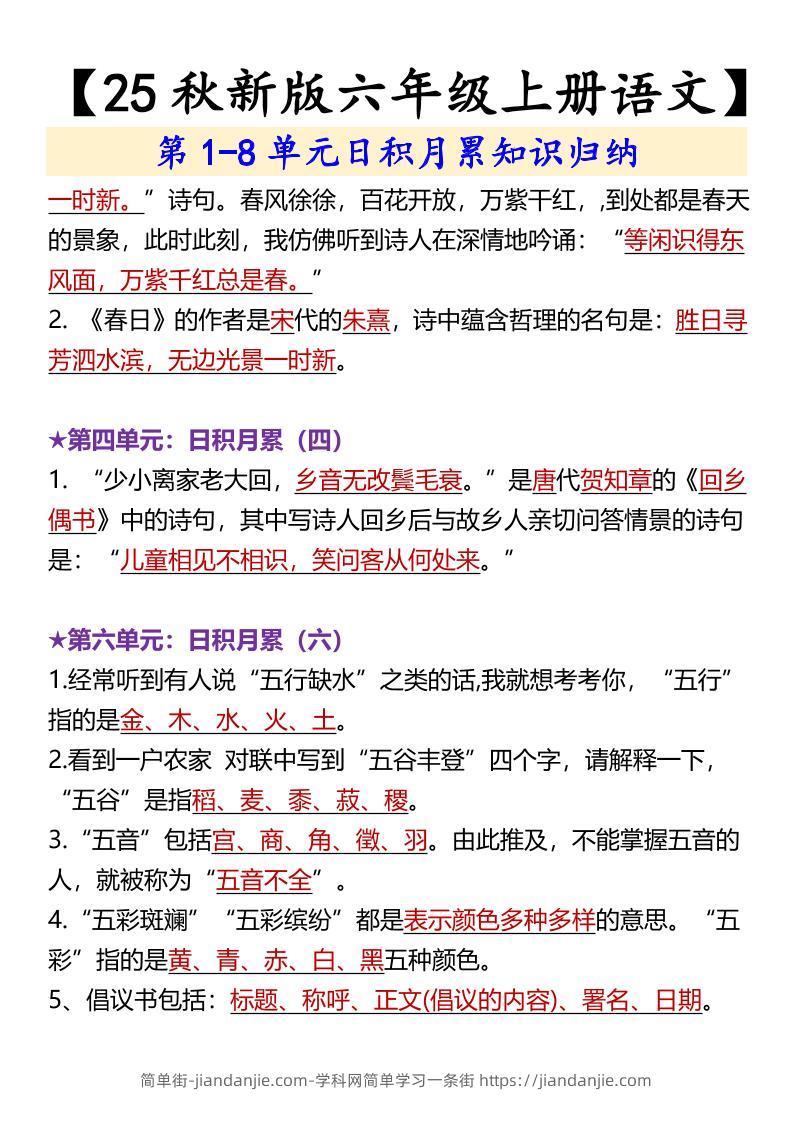 【2025秋新版】【六年级上册语文】第1-8单元日积月累知识归纳 简单街 6月前发布 关注 私信 0130 【2025秋新版】【六年级上册语文】第1-8单元日积月累知识归纳此内容为付费资源,请付费后查看¥1.2黄金会员免费钻石会员免费立即购买您当前未登录!建议登陆后购买,可保存购买订单格式pdf页数4 页大小261.02 KB付费资源 ——预览已结束,还剩2页未读——开通会员后可免费下载高清完整文档 © 版权声明文章版权归作者所有,未经允许请勿转载。THE END小学语文喜欢就支持一下吧点赞0 分享收藏0