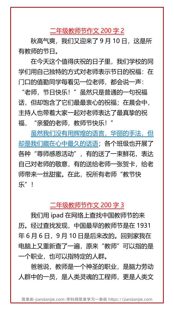 【2025秋新版】小学二年级必写教师节优秀作文10篇汇总-二上语文 简单街 4月前发布 关注 私信 0280 【2025秋新版】小学二年级必写教师节优秀作文10篇汇总-二上语文此内容为付费资源,请付费后查看¥2.7黄金会员免费钻石会员免费立即购买您当前未登录!建议登陆后购买,可保存购买订单格式pdf页数7 页大小271.62 KB付费资源 ——预览已结束,还剩5页未读——开通会员后可免费下载高清完整文档 © 版权声明文章版权归作者所有,未经允许请勿转载。THE END小学语文喜欢就支持一下吧点赞0 分享收藏0