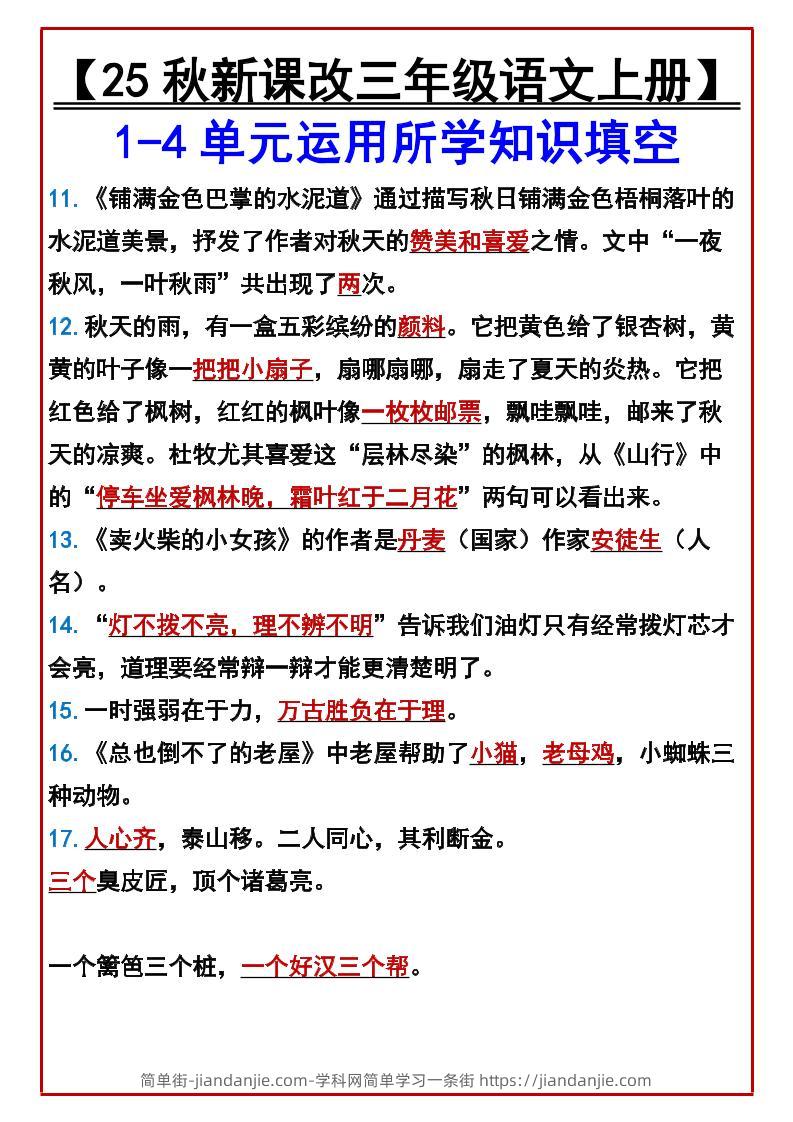 【2025秋新版】【三年级语文上册】1-4单元运用所学知识填空 简单街 4月前发布 关注 私信 0290 【2025秋新版】【三年级语文上册】1-4单元运用所学知识填空此内容为付费资源,请付费后查看¥2.7黄金会员免费钻石会员免费立即购买您当前未登录!建议登陆后购买,可保存购买订单格式pdf页数3 页大小76.17 KB付费资源 ——预览已结束,还剩1页未读——开通会员后可免费下载高清完整文档 © 版权声明文章版权归作者所有,未经允许请勿转载。THE END小学语文喜欢就支持一下吧点赞0 分享收藏0
