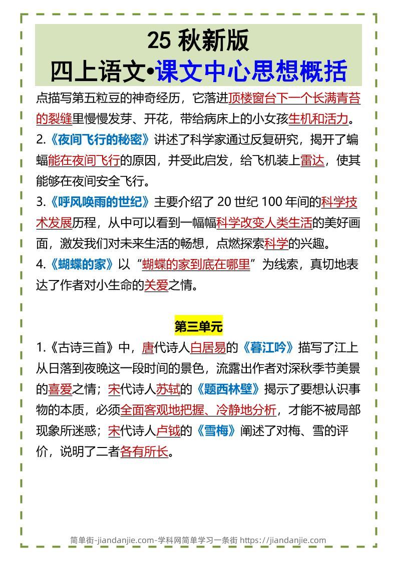 【2025秋新版】四上语文•课文中心思想概括 简单街 6月前发布 关注 私信 0350 【2025秋新版】四上语文•课文中心思想概括此内容为付费资源,请付费后查看¥1.2黄金会员免费钻石会员免费立即购买您当前未登录!建议登陆后购买,可保存购买订单格式pdf页数6 页大小406.86 KB付费资源 ——预览已结束,还剩4页未读——开通会员后可免费下载高清完整文档 © 版权声明文章版权归作者所有,未经允许请勿转载。THE END小学语文喜欢就支持一下吧点赞0 分享收藏0