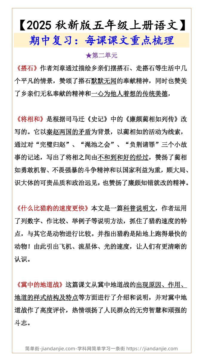 【2025秋新版】【五年级上册语文】期中复习:每课课文重点梳理 简单街 6月前发布 关注 私信 0190 【2025秋新版】【五年级上册语文】期中复习:每课课文重点梳理此内容为付费资源,请付费后查看¥0.9黄金会员免费钻石会员免费立即购买您当前未登录!建议登陆后购买,可保存购买订单格式pdf页数5 页大小134.53 KB付费资源 ——预览已结束,还剩3页未读——开通会员后可免费下载高清完整文档 © 版权声明文章版权归作者所有,未经允许请勿转载。THE END小学语文喜欢就支持一下吧点赞0 分享收藏0