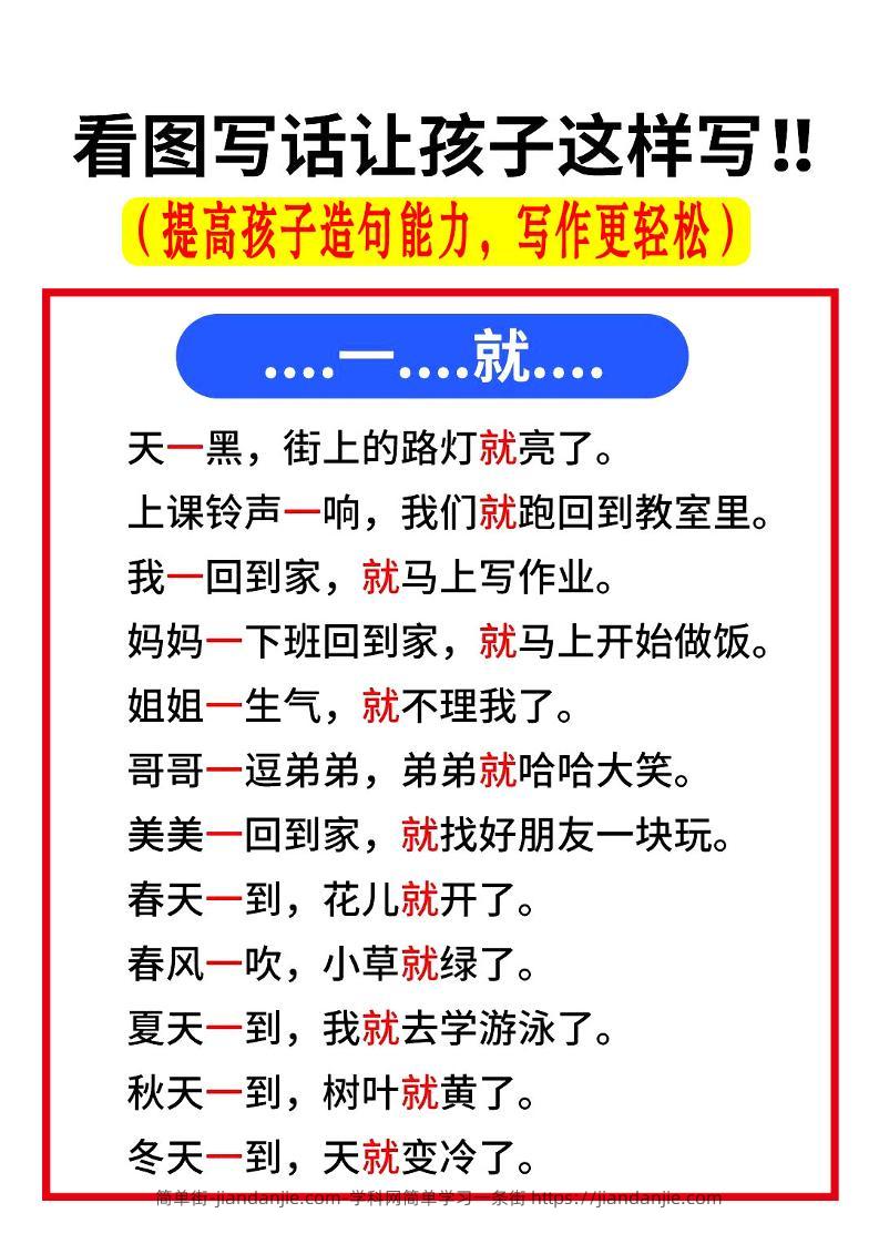 一上语文【常考关联词造句】 简单街 7月前发布 关注 私信 0300 一上语文【常考关联词造句】此内容为付费资源,请付费后查看¥0.9黄金会员免费钻石会员免费立即购买您当前未登录!建议登陆后购买,可保存购买订单格式pdf页数7 页大小1.74 MB付费资源 ——预览已结束,还剩5页未读——开通会员后可免费下载高清完整文档 © 版权声明文章版权归作者所有,未经允许请勿转载。THE END小学语文喜欢就支持一下吧点赞0 分享收藏0