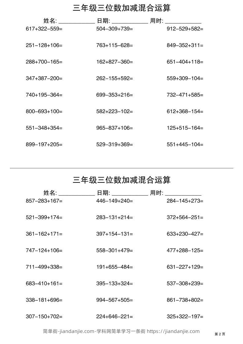 三年级三位数加减混合运算60天30页-三上数学 简单街 3月前发布 关注 私信 0260 三年级三位数加减混合运算60天30页-三上数学此内容为付费资源,请付费后查看¥1.2黄金会员免费钻石会员免费立即购买您当前未登录!建议登陆后购买,可保存购买订单格式pdf页数30 页大小120.65 KB付费资源 ——预览已结束,还剩28页未读——开通会员后可免费下载高清完整文档 © 版权声明文章版权归作者所有,未经允许请勿转载。THE END小学数学喜欢就支持一下吧点赞0 分享收藏0