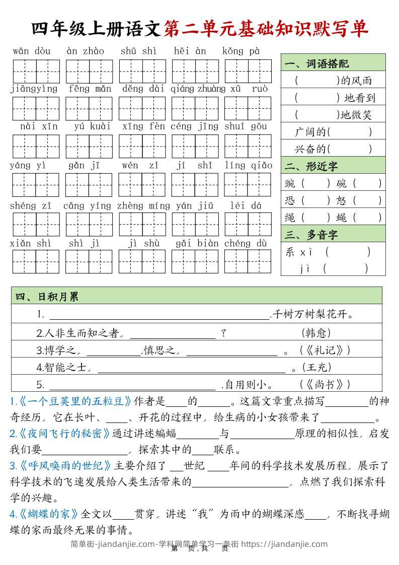 四上语文1-8单元基础知识默写单(含答案16页) 简单街 3月前发布 关注 私信 0240 四上语文1-8单元基础知识默写单(含答案16页)此内容为付费资源,请付费后查看¥0.9黄金会员免费钻石会员免费立即购买您当前未登录!建议登陆后购买,可保存购买订单格式pdf页数16 页大小780.30 KB付费资源 ——预览已结束,还剩14页未读——开通会员后可免费下载高清完整文档 © 版权声明文章版权归作者所有,未经允许请勿转载。THE END小学语文喜欢就支持一下吧点赞0 分享收藏0