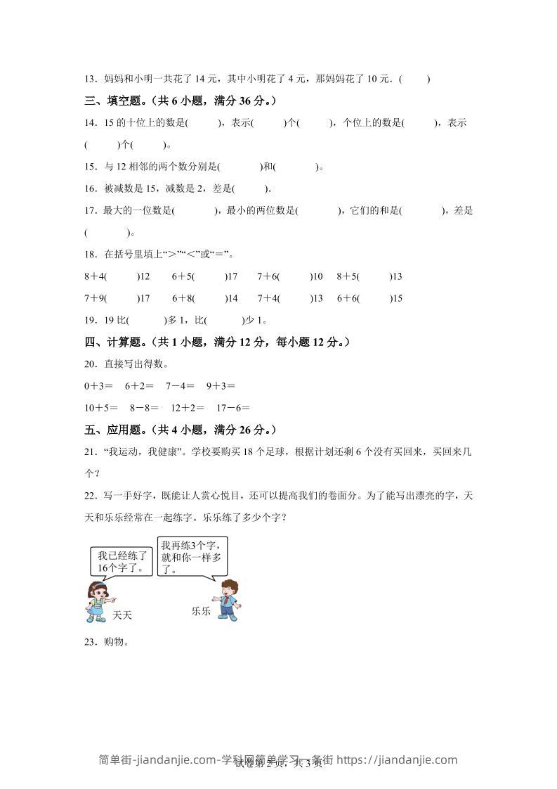 冀教版数学一年级上册第三单元《认识11-20》单元测试卷(基础卷) 简单街 5月前发布 关注 私信 0270 冀教版数学一年级上册第三单元《认识11-20》单元测试卷(基础卷)此内容为付费资源,请付费后查看¥0.9黄金会员免费钻石会员免费立即购买您当前未登录!建议登陆后购买,可保存购买订单格式pdf页数10 页大小209.01 KB付费资源 ——预览已结束,还剩8页未读——开通会员后可免费下载高清完整文档 © 版权声明文章版权归作者所有,未经允许请勿转载。THE END小学数学喜欢就支持一下吧点赞0 分享收藏0
