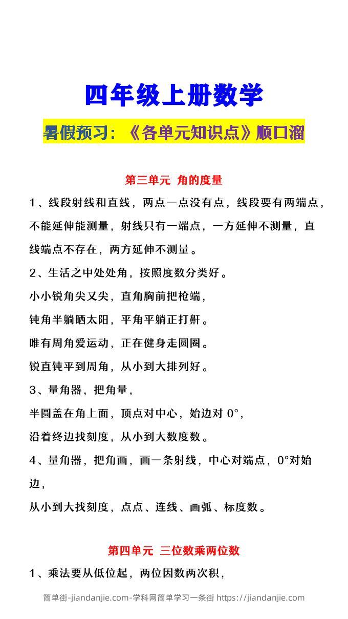 【2025秋新版】四年级上册数学《各单元知识点顺口溜》 简单街 5月前发布 关注 私信 020 【2025秋新版】四年级上册数学《各单元知识点顺口溜》此内容为付费资源,请付费后查看¥1.5黄金会员免费钻石会员免费立即购买您当前未登录!建议登陆后购买,可保存购买订单格式pdf页数5 页大小166.62 KB付费资源 ——预览已结束,还剩3页未读——开通会员后可免费下载高清完整文档 © 版权声明文章版权归作者所有,未经允许请勿转载。THE END小学数学喜欢就支持一下吧点赞0 分享收藏0