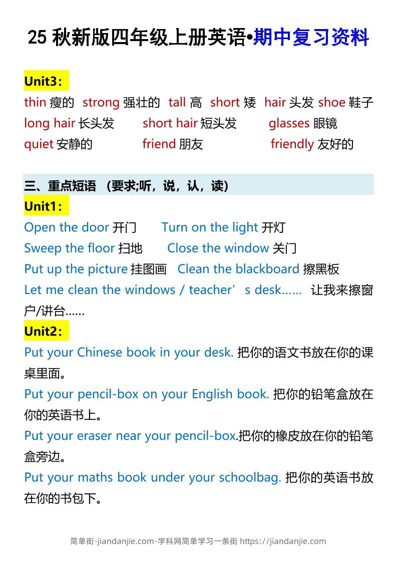 【2025秋新版】四年级上册英语•期中复习资料 简单街 3月前发布 关注 私信 020 【2025秋新版】四年级上册英语•期中复习资料此内容为付费资源,请付费后查看¥0.9黄金会员免费钻石会员免费立即购买您当前未登录!建议登陆后购买,可保存购买订单格式pdf页数5 页大小150.15 KB付费资源 ——预览已结束,还剩3页未读——开通会员后可免费下载高清完整文档 © 版权声明文章版权归作者所有,未经允许请勿转载。THE END小学英语喜欢就支持一下吧点赞0 分享收藏0