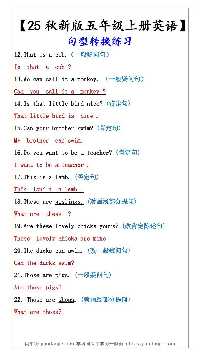 【2025秋新版】五年级上册英语句型转换练习 简单街 3月前发布 关注 私信 0290 【2025秋新版】五年级上册英语句型转换练习此内容为付费资源,请付费后查看¥1.5黄金会员免费钻石会员免费立即购买您当前未登录!建议登陆后购买,可保存购买订单格式pdf页数3 页大小50.94 KB付费资源 ——预览已结束,还剩1页未读——开通会员后可免费下载高清完整文档 © 版权声明文章版权归作者所有,未经允许请勿转载。THE END小学英语喜欢就支持一下吧点赞0 分享收藏0