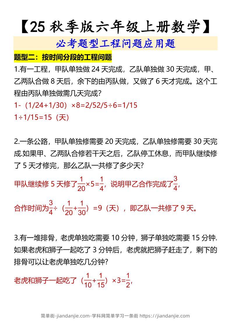 【2025秋新版】【六年级上册数学】必考题型工程问题应用题 简单街 3月前发布 关注 私信 0240 【2025秋新版】【六年级上册数学】必考题型工程问题应用题此内容为付费资源,请付费后查看¥0.9黄金会员免费钻石会员免费立即购买您当前未登录!建议登陆后购买,可保存购买订单格式pdf页数4 页大小109.14 KB付费资源 ——预览已结束,还剩2页未读——开通会员后可免费下载高清完整文档 © 版权声明文章版权归作者所有,未经允许请勿转载。THE END小学数学喜欢就支持一下吧点赞0 分享收藏0