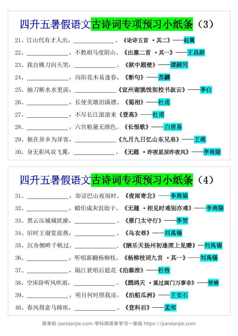 四升五暑假五上语文预习古诗词专项预习小纸条(含答案10页) 简单街 7月前发布 关注 私信 040 四升五暑假五上语文预习古诗词专项预习小纸条(含答案10页)此内容为付费资源,请付费后查看¥1.5黄金会员免费钻石会员免费立即购买您当前未登录!建议登陆后购买,可保存购买订单格式pdf页数10 页大小399.53 KB付费资源 ——预览已结束,还剩8页未读——开通会员后可免费下载高清完整文档 © 版权声明文章版权归作者所有,未经允许请勿转载。THE END小学语文喜欢就支持一下吧点赞0 分享收藏0