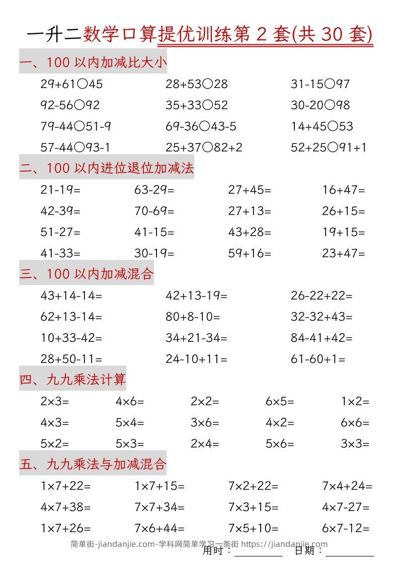 一升二数学口算提优训练30套30页-二上数学 简单街 3月前发布 关注 私信 020 一升二数学口算提优训练30套30页-二上数学此内容为付费资源,请付费后查看¥1.2黄金会员免费钻石会员免费立即购买您当前未登录!建议登陆后购买,可保存购买订单格式pdf页数30 页大小181.46 KB付费资源 ——预览已结束,还剩28页未读——开通会员后可免费下载高清完整文档 © 版权声明文章版权归作者所有,未经允许请勿转载。THE END小学数学喜欢就支持一下吧点赞0 分享收藏0