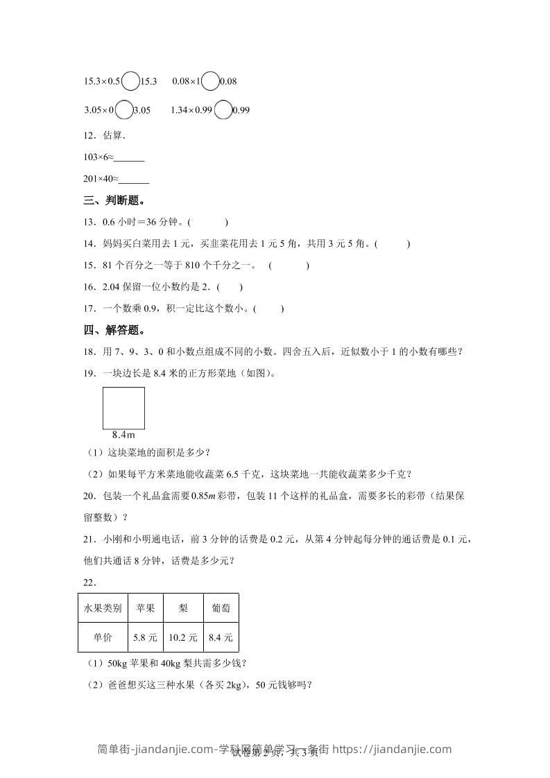 西师大版数学五年级上册第一单元《小数乘法》单元测试卷 简单街 6月前发布 关注 私信 0260 西师大版数学五年级上册第一单元《小数乘法》单元测试卷此内容为付费资源,请付费后查看¥1.2黄金会员免费钻石会员免费立即购买您当前未登录!建议登陆后购买,可保存购买订单格式pdf页数9 页大小162.43 KB付费资源 ——预览已结束,还剩7页未读——开通会员后可免费下载高清完整文档 © 版权声明文章版权归作者所有,未经允许请勿转载。THE END小学数学喜欢就支持一下吧点赞0 分享收藏0