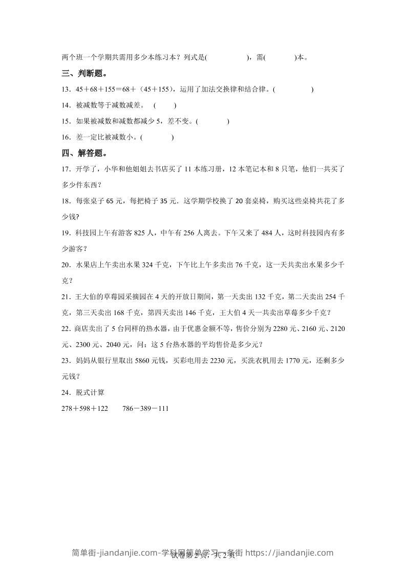 西师大版数学四年级上册第二单元《加减法的关系和加法运算律》单元测试卷 简单街 6月前发布 关注 私信 0120 西师大版数学四年级上册第二单元《加减法的关系和加法运算律》单元测试卷此内容为付费资源,请付费后查看¥1.2黄金会员免费钻石会员免费立即购买您当前未登录!建议登陆后购买,可保存购买订单格式pdf页数8 页大小119.14 KB付费资源 ——预览已结束,还剩6页未读——开通会员后可免费下载高清完整文档 © 版权声明文章版权归作者所有,未经允许请勿转载。THE END小学数学喜欢就支持一下吧点赞0 分享收藏0