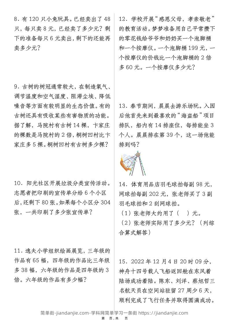 二升三数学暑假提前练《两、三位数乘一位数》易错应用题100道(含答案解析49页)-三上数学 简单街 6月前发布 关注 私信 0260 二升三数学暑假提前练《两、三位数乘一位数》易错应用题100道(含答案解析49页)-三上数学此内容为付费资源,请付费后查看¥2.7黄金会员免费钻石会员免费立即购买您当前未登录!建议登陆后购买,可保存购买订单格式pdf页数49 页大小710.32 KB付费资源 ——预览已结束,还剩47页未读——开通会员后可免费下载高清完整文档 © 版权声明文章版权归作者所有,未经允许请勿转载。THE END小学数学喜欢就支持一下吧点赞0 分享收藏0