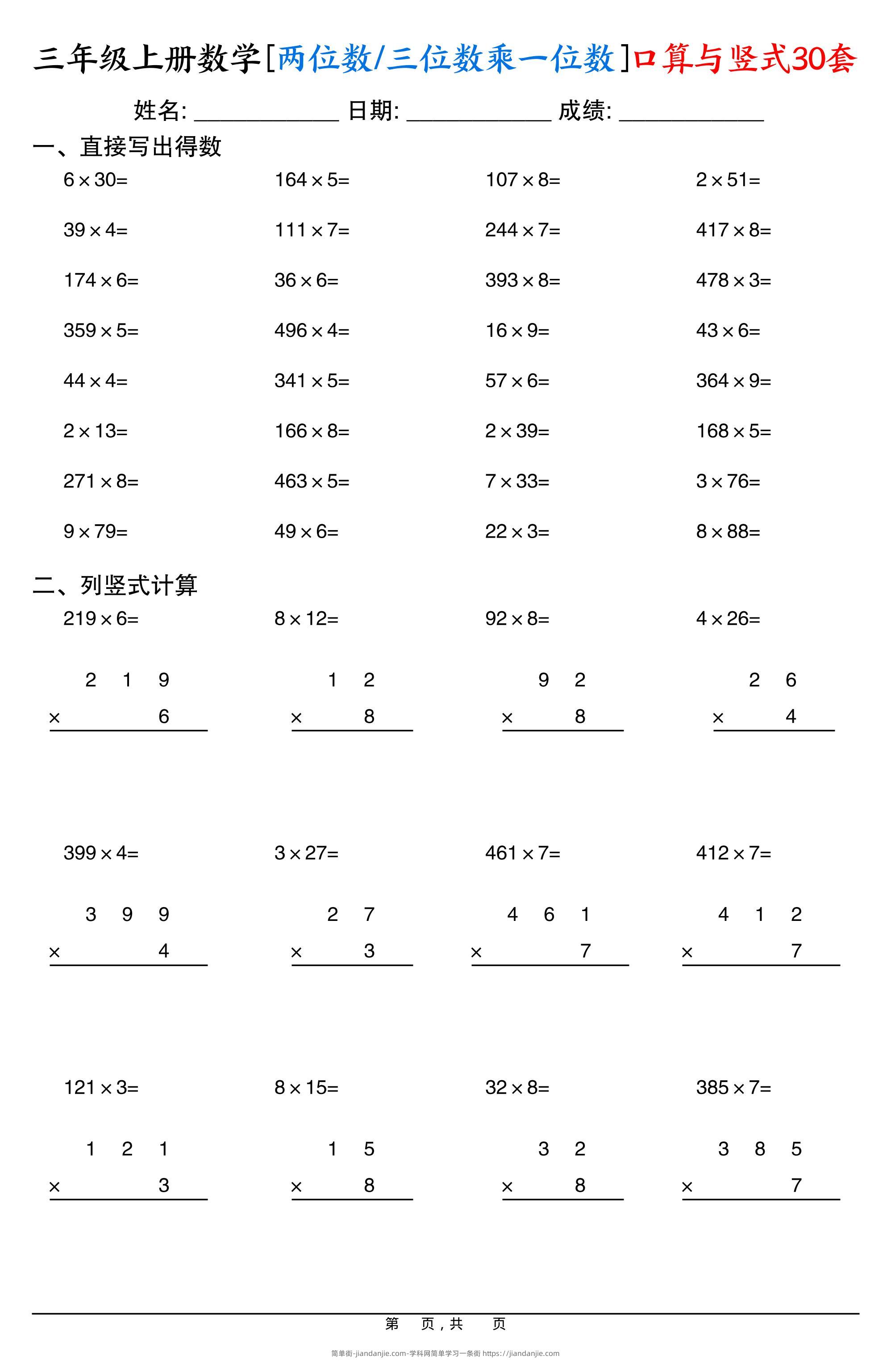三上数学两位数三位数乘一位数口算与竖式30套 简单街 5月前发布 关注 私信 0100 三上数学两位数三位数乘一位数口算与竖式30套此内容为付费资源,请付费后查看¥1.5黄金会员免费钻石会员免费立即购买您当前未登录!建议登陆后购买,可保存购买订单格式pdf页数30 页大小128.17 KB付费资源 ——预览已结束,还剩28页未读——开通会员后可免费下载高清完整文档 © 版权声明文章版权归作者所有,未经允许请勿转载。THE END小学数学喜欢就支持一下吧点赞0 分享收藏0