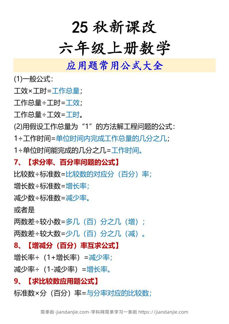 【2025秋新版】六年级上册数学应用题常用公式大全 简单街 5月前发布 关注 私信 010 【2025秋新版】六年级上册数学应用题常用公式大全此内容为付费资源,请付费后查看¥1.2黄金会员免费钻石会员免费立即购买您当前未登录!建议登陆后购买,可保存购买订单格式pdf页数5 页大小104.55 KB付费资源 ——预览已结束,还剩3页未读——开通会员后可免费下载高清完整文档 © 版权声明文章版权归作者所有,未经允许请勿转载。THE END小学数学喜欢就支持一下吧点赞0 分享收藏0