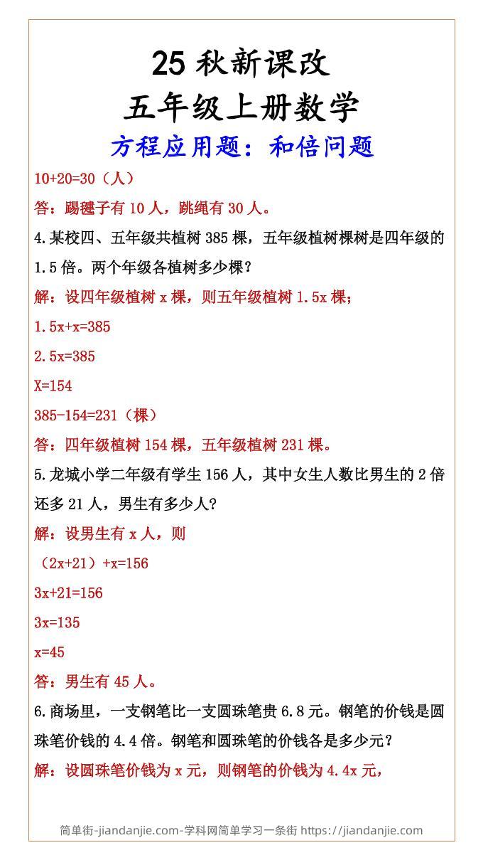 【2025秋新版】六年级上册数学方程应用题:和倍问题 简单街 5月前发布 关注 私信 020 【2025秋新版】六年级上册数学方程应用题:和倍问题此内容为付费资源,请付费后查看¥1.2黄金会员免费钻石会员免费立即购买您当前未登录!建议登陆后购买,可保存购买订单格式pdf页数6 页大小66.70 KB付费资源 ——预览已结束,还剩4页未读——开通会员后可免费下载高清完整文档 © 版权声明文章版权归作者所有,未经允许请勿转载。THE END小学数学喜欢就支持一下吧点赞0 分享收藏0