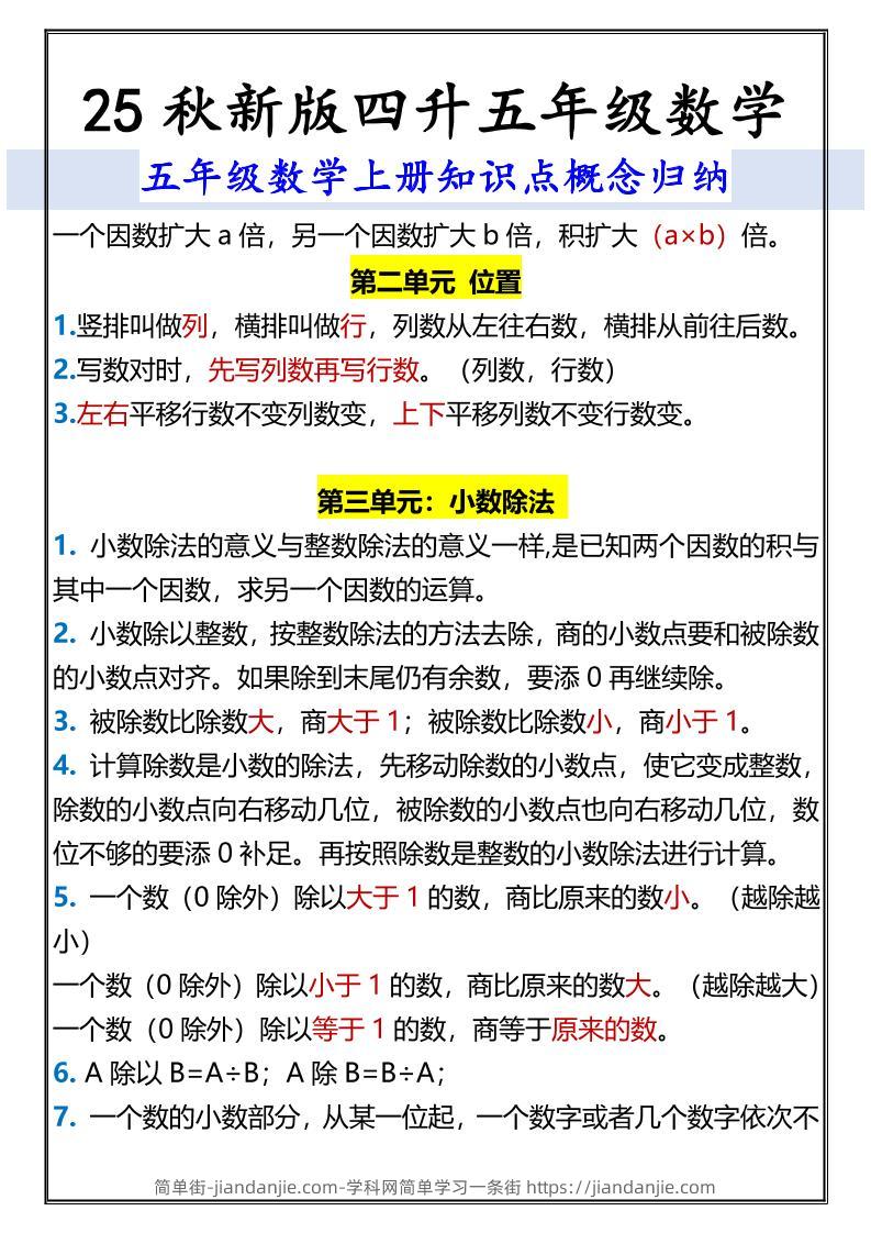 【2025秋新版】五年级数学上册知识点概念归纳 简单街 8月前发布 关注 私信 050 【2025秋新版】五年级数学上册知识点概念归纳此内容为付费资源,请付费后查看¥0.9黄金会员免费钻石会员免费立即购买您当前未登录!建议登陆后购买,可保存购买订单格式pdf页数7 页大小177.28 KB付费资源 ——预览已结束,还剩5页未读——开通会员后可免费下载高清完整文档 © 版权声明文章版权归作者所有,未经允许请勿转载。THE END小学数学喜欢就支持一下吧点赞0 分享收藏0