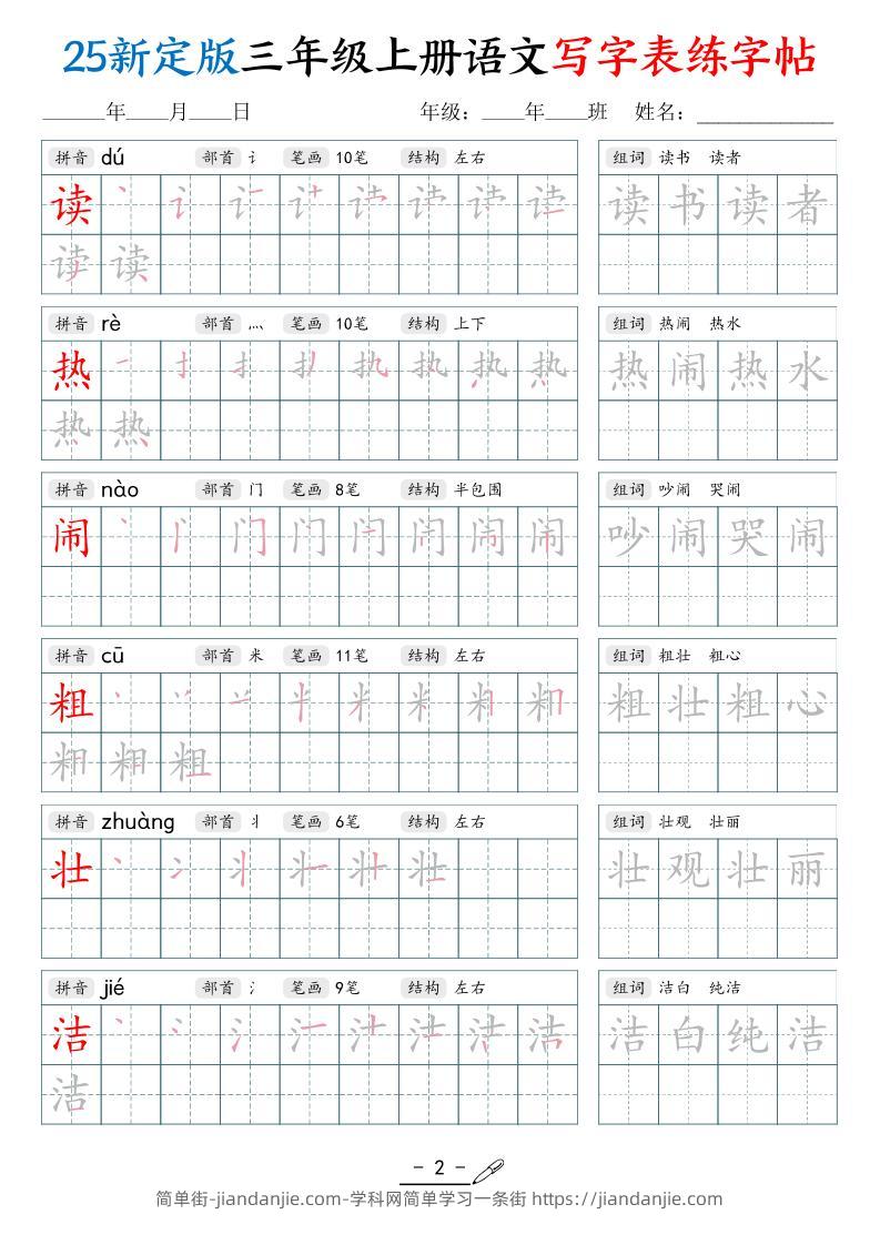 25新定版三上语文写字表练字帖(拼音笔顺组词描红250字)42页 简单街 7月前发布 关注 私信 010 25新定版三上语文写字表练字帖(拼音笔顺组词描红250字)42页此内容为付费资源,请付费后查看¥2.7黄金会员免费钻石会员免费立即购买您当前未登录!建议登陆后购买,可保存购买订单格式pdf页数42 页大小2.02 MB付费资源 ——预览已结束,还剩40页未读——开通会员后可免费下载高清完整文档 © 版权声明文章版权归作者所有,未经允许请勿转载。THE END小学语文喜欢就支持一下吧点赞0 分享收藏0