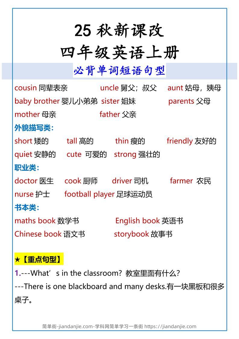 【2025秋新版】四年级英语上册必背单词短语句型 简单街 3月前发布 关注 私信 020 【2025秋新版】四年级英语上册必背单词短语句型此内容为付费资源,请付费后查看¥1.2黄金会员免费钻石会员免费立即购买您当前未登录!建议登陆后购买,可保存购买订单格式pdf页数5 页大小143.60 KB付费资源 ——预览已结束,还剩3页未读——开通会员后可免费下载高清完整文档 © 版权声明文章版权归作者所有,未经允许请勿转载。THE END小学英语喜欢就支持一下吧点赞0 分享收藏0
