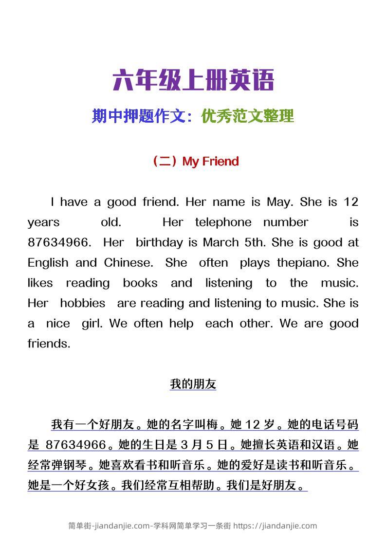 【2025秋新版】六年级上册英语期中押题作文优秀范文整理 简单街 3月前发布 关注 私信 0220 【2025秋新版】六年级上册英语期中押题作文优秀范文整理此内容为付费资源,请付费后查看¥1.2黄金会员免费钻石会员免费立即购买您当前未登录!建议登陆后购买,可保存购买订单格式pdf页数5 页大小94.84 KB付费资源 ——预览已结束,还剩3页未读——开通会员后可免费下载高清完整文档 © 版权声明文章版权归作者所有,未经允许请勿转载。THE END小学英语喜欢就支持一下吧点赞0 分享收藏0