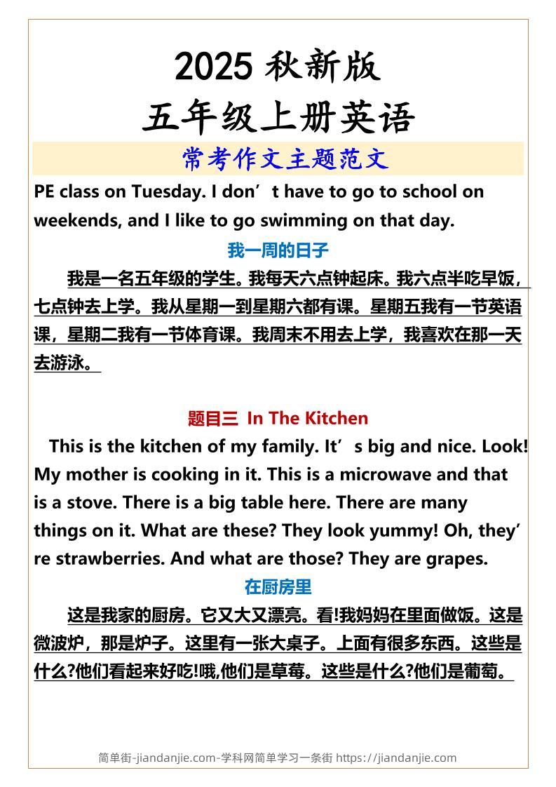 【2025秋新版】五年级上册英语常考作文主题范文 简单街 3月前发布 关注 私信 020 【2025秋新版】五年级上册英语常考作文主题范文此内容为付费资源,请付费后查看¥0.9黄金会员免费钻石会员免费立即购买您当前未登录!建议登陆后购买,可保存购买订单格式pdf页数4 页大小101.25 KB付费资源 ——预览已结束,还剩2页未读——开通会员后可免费下载高清完整文档 © 版权声明文章版权归作者所有,未经允许请勿转载。THE END小学英语喜欢就支持一下吧点赞0 分享收藏0