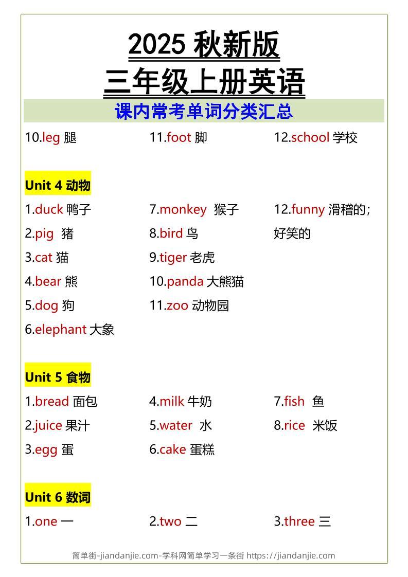 【2025秋新版】三年级上册英语课内常考单词分类汇总 简单街 3月前发布 关注 私信 080 【2025秋新版】三年级上册英语课内常考单词分类汇总此内容为付费资源,请付费后查看¥2.7黄金会员免费钻石会员免费立即购买您当前未登录!建议登陆后购买,可保存购买订单格式pdf页数3 页大小89.83 KB付费资源 ——预览已结束,还剩1页未读——开通会员后可免费下载高清完整文档 © 版权声明文章版权归作者所有,未经允许请勿转载。THE END小学英语喜欢就支持一下吧点赞0 分享收藏0