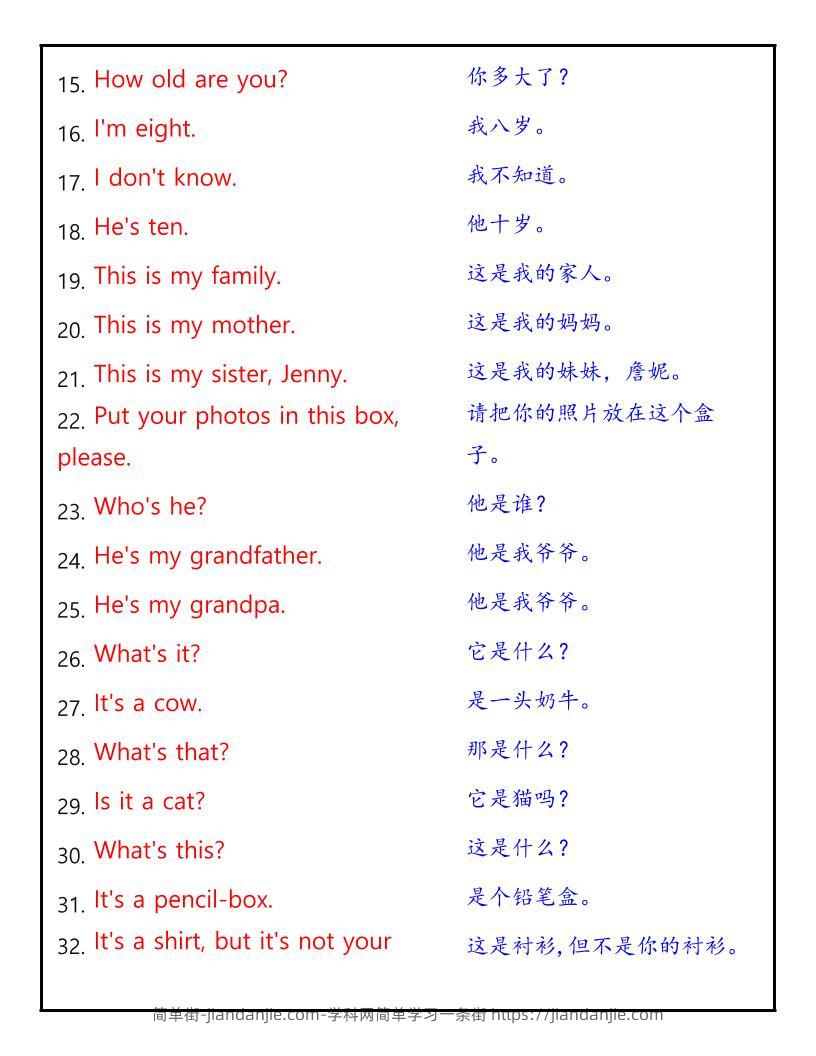 【2025秋新版】三年级英语上册《重点句子》中英文对照 简单街 3月前发布 关注 私信 090 【2025秋新版】三年级英语上册《重点句子》中英文对照此内容为付费资源,请付费后查看¥1.5黄金会员免费钻石会员免费立即购买您当前未登录!建议登陆后购买,可保存购买订单格式pdf页数4 页大小66.34 KB付费资源 ——预览已结束,还剩2页未读——开通会员后可免费下载高清完整文档 © 版权声明文章版权归作者所有,未经允许请勿转载。THE END小学英语喜欢就支持一下吧点赞0 分享收藏0