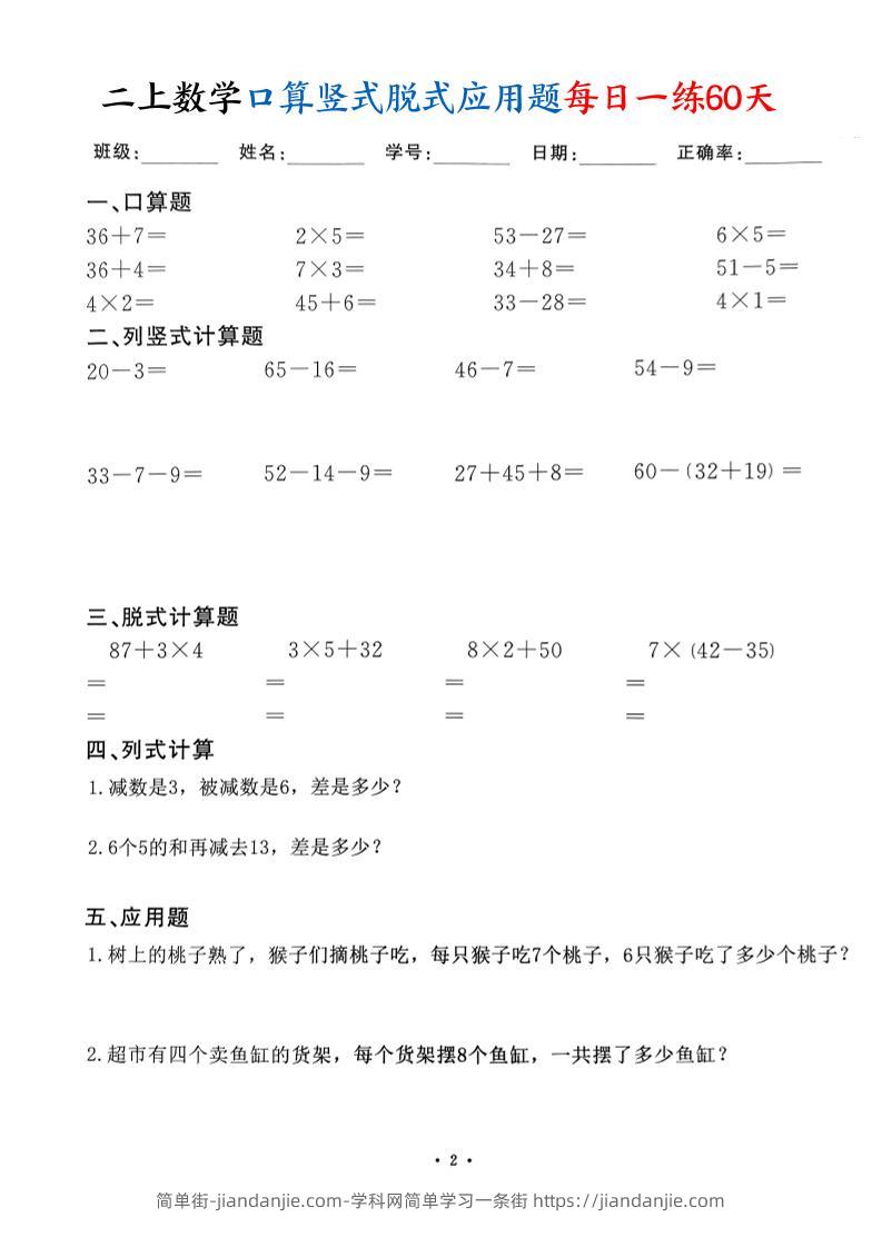 二上数学口算竖式脱式应用题每日一练60天(60页) 简单街 4月前发布 关注 私信 0260 二上数学口算竖式脱式应用题每日一练60天(60页)此内容为付费资源,请付费后查看¥2.7黄金会员免费钻石会员免费立即购买您当前未登录!建议登陆后购买,可保存购买订单格式pdf页数60 页大小26.94 MB付费资源 ——预览已结束,还剩58页未读——开通会员后可免费下载高清完整文档 © 版权声明文章版权归作者所有,未经允许请勿转载。THE END小学数学喜欢就支持一下吧点赞0 分享收藏0